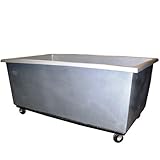 Oversized to accomodate your largest loads. Heavy-duty molded polyethylene construction. Angle-iron base. Body is bolted directly to base for superior rigidity. 5" casters are attached at the corners.